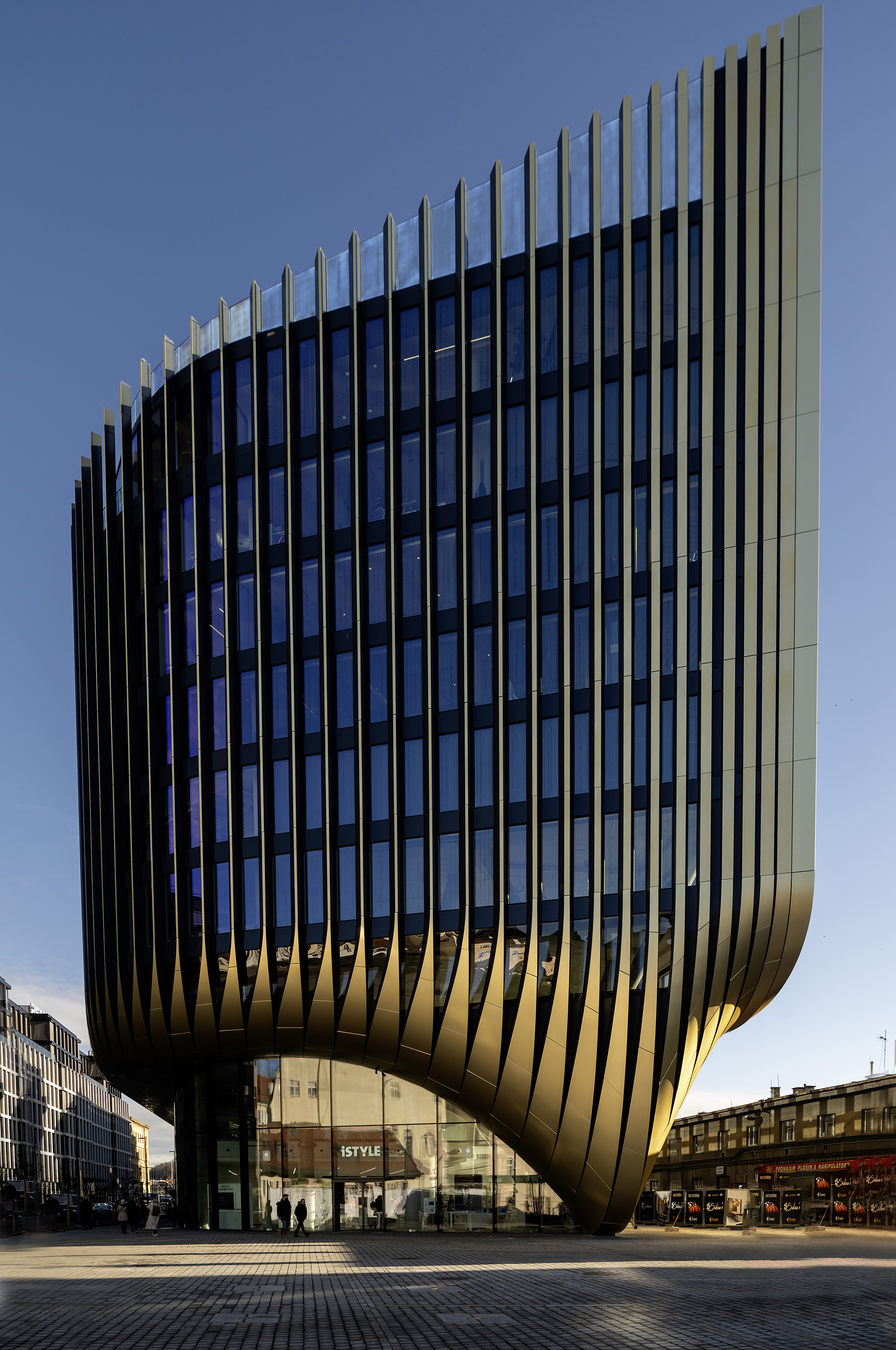 „Masaryčka“ je komplexem kancelářských budov s obchody, bistry a restauracemi v přízemí. Hlavní dominantou je zlatá věž evokující z jedné strany tvar lokomotivy. Architekturu navrhla Zaha Hadid krátce před svou smrtí, přičemž její myšlenkou bylo věnovat Praze další věž, neboť ve světě je město známé jako Praha stověžatá. Při čelním pohledu z ulice V Celnici padne do oka nápadné zlaté žebrování, ale teprve z jižního směru, to znamená od Masarykova nádraží, vyjde najevo, že se žebrování spojuje v organickou hmotu evokující kola, přičemž celá budova působí navenek jako obrovská lokomotiva.