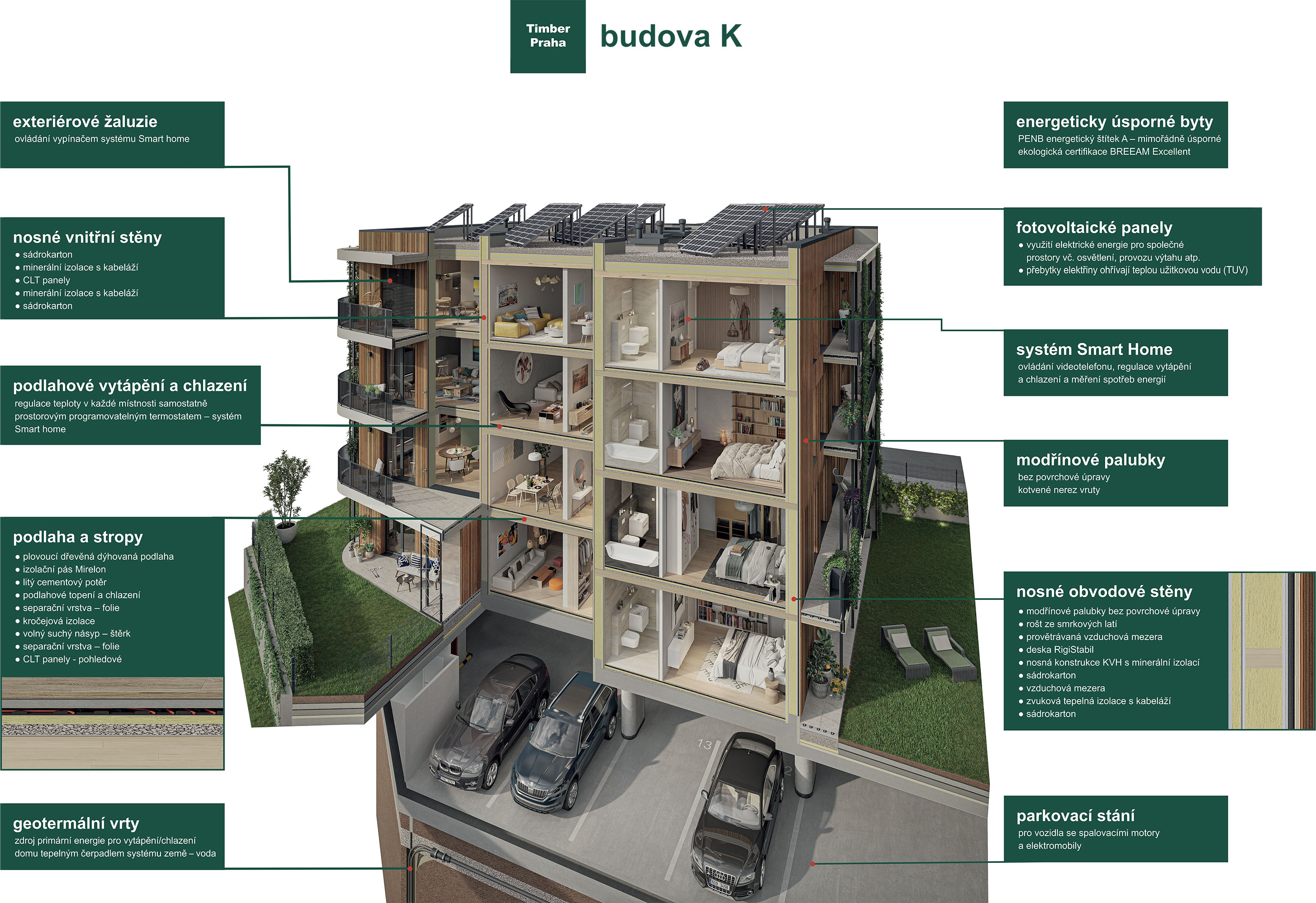 Timber Praha společnosti UBM Development Czechia je ukázkou smysluplného využití nejmodernějších technologií, obnovitelných materiálů a pokrokového konceptu výstavby nízkoenergetických bytových domů.