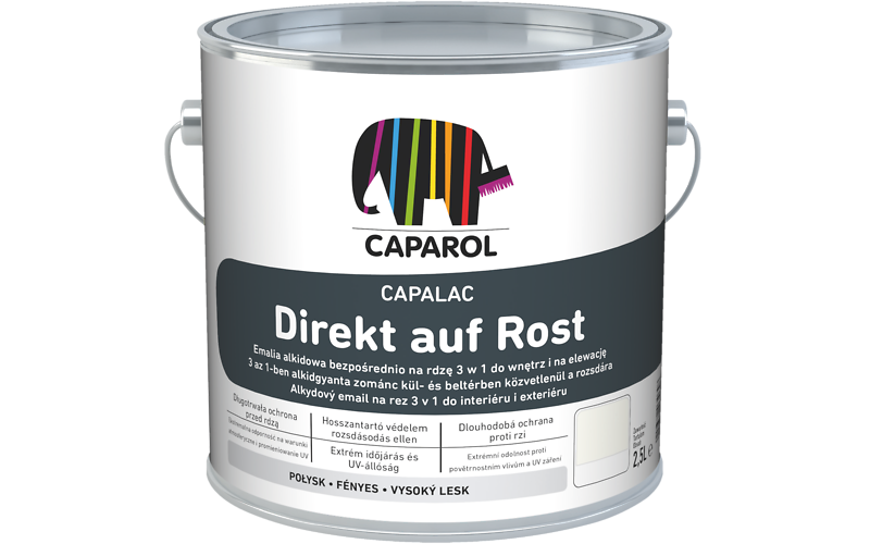 K dispozici je v 8 nejžádanějších odstínech podle vzorníku RAL. Direkt auf Rost lze nanášet natíráním, válečkem a stříkáním a to i přímo na zkorodované plochy. Má vysokou krycí schopnost, rychle schne a tím šetří čas při aplikaci. Poskytuje odolnou a dlouhotrvající ochranu proti povětrnostním vlivům a korozi. Capalac Direkt auf Rost lze použít na natřené i neošetřené železné a ocelové povrchy jako dveře, brány, ploty nebo zábradlí.