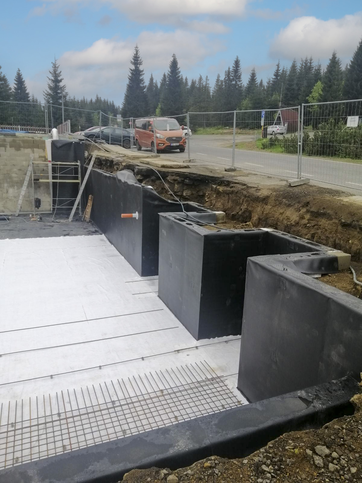 Třetí oblastí, ve které Building Elements významně boduje u svých partnerů, je izolace spodní stavby. Premiantem je nevyztužená homogenní fólie vyráběná na bázi měkčeného PVC – HYDROTOP. Její použití je cíleno jako zábrana proti průniku zemní vlhkosti, vodě, dokonce tlakové a volně stékající vodě. Je vhodná také pro izolaci základů, základových a podlahových desek, vodních nádrží vyjma pitné vody. Vyrábí se v tloušťkách 1, 1,5 a 2 mm a je odolná vůči ropným produktům. Splňuje samozřejmě požadavky na protiradonovou bariéru a UV stabilitu. „Vedle této nejpoužívanější fólie máme v nabídce také oboustranně UV stabilizovanou jezírkovou fólii, a to ve dvou barevných škálách – zelenošedá a zelenočerná. U všech produktů nabízím současně poradenství a veškerý servis,“ doplňuje Antonín Dvořák.