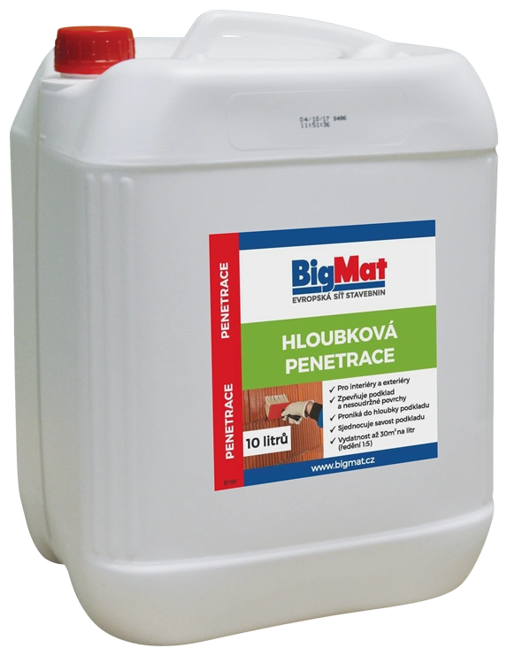 Žádná kvalitní stavba se neobejde bez důkladné penetrace. Penetrace hloubková BigMat je jednosložková, vodou ředitelná a navržená tak, aby sjednotila savost podkladu, zpevnila povrch a připravila ho na další vrstvy – ať už jde o nátěry, lepidla nebo omítky. Díky svému složení perfektně přilne ke všem běžným minerálním podkladům.