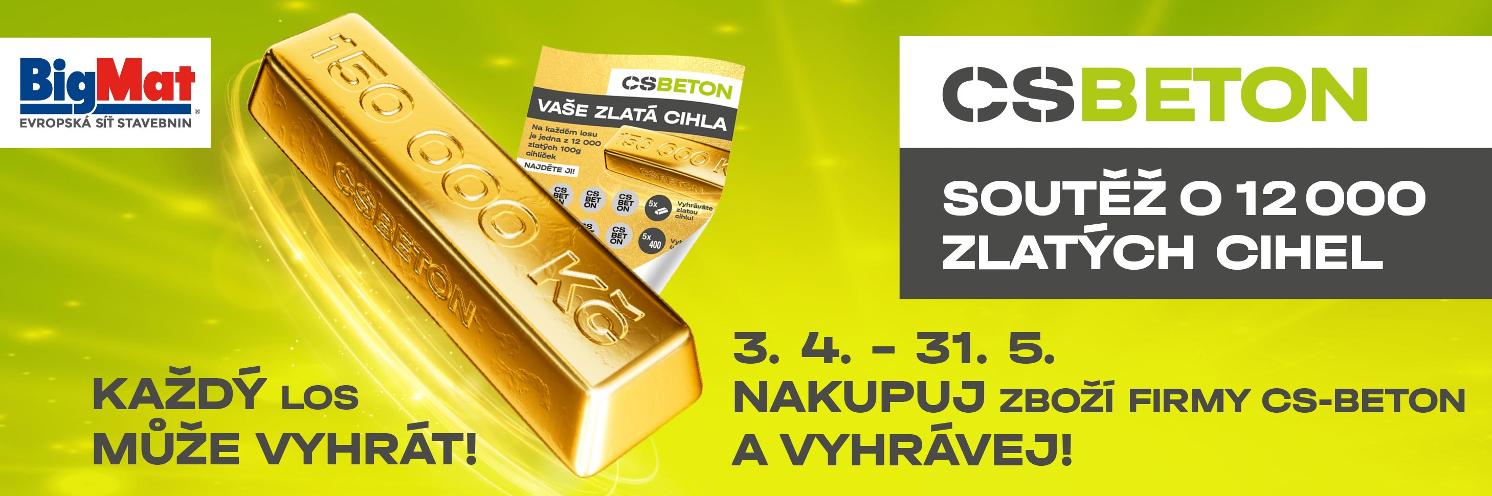 Konečně to vypadá, že se za zimou definitivně zabouchly dveře. Nejvyšší čas vyrazit do nejbližších stavebnin a naplánovat, co bude letos potřeba. Aby firma CS-BETON stavebníkům a realizačním firmám usnadnila rozhodování, vyhlásila originální jarní soutěž o 12 000 zlatých cihel. Stačí nakoupit jejich produkty z portfolia DŮM A ZAHRADA v minimální hodnotě 25 000 Kč a výhra může být vaše!