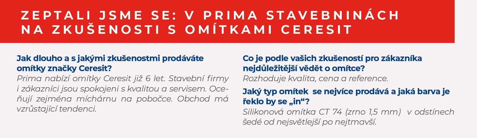 Nová siliko-elastomerová omítka Ceresit CT 76 má kromě uvedených výhod a vysoké elasticity a odolnosti proti nárazu i další přednosti. Novinka je dostupná v celé paletě barev Ceresit Colours of Nature® a Intense. A její atraktivitu zvyšují další přednosti inovativních technologií firmy Henkel. Technologie DoubleDry® s „dvojitým efektem“ suché fasády dává nové omítce velmi nízkou nasákavost a současně vysokou paropropustnost. Mechanismus dvojité ochrany zajišťuje rychlé vyschnutí povrchu omítky a její odolnost proti hromadění vlhkosti. Originální Bioprotect® receptura přidává ochranu proti šíření mikroorganismů a jejich nežádoucím vlivům.
