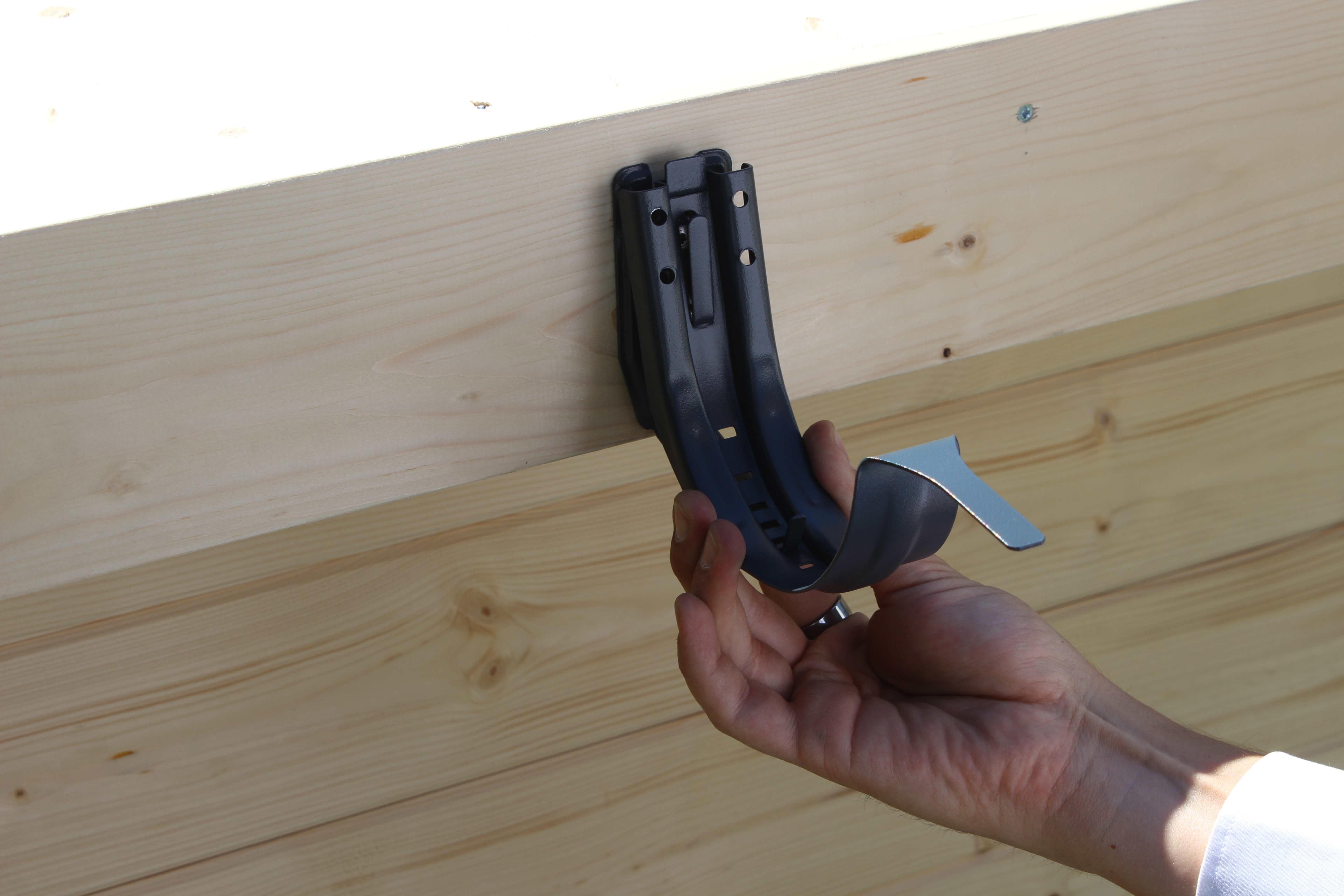 No a když už je řeč o háku, zmíníme také hák pro čelní montáž, který Zambelli již dodává. Opět jsou k dispozici různé velikosti a provedení. Tento hák je vhodný pro umístění střešních žlabů k čelním prknům. Konstrukce je stabilní a řemeslník má k dispozici vše potřebné k montáži. Společně s hákem je možné také použít nastavitelnou konzolu pro jednoduché a bezproblémové nastavení úhlu, čímž se usnadní vertikální vyrovnání střešního žlabu při šikmé ploše. Konzolu je možné namontovat v úhlech od 8°do 44°.