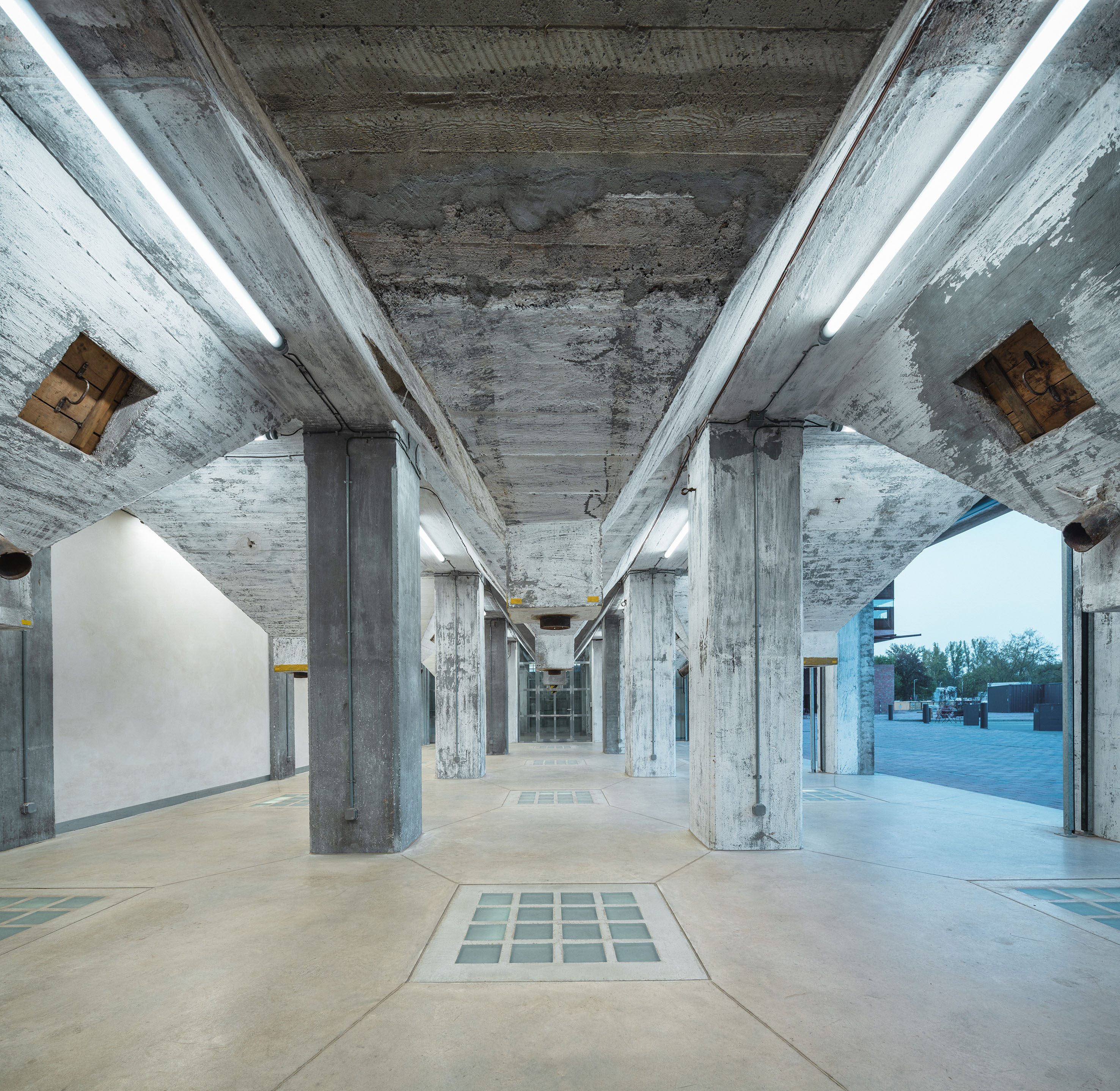 Úvahy architektů o hlavním vstupu vedly k rozhodnutí odtajnit, aktivovat parter (přízemí) z obou bočních stran a vytvořit pod zásobníky volně přístupný veřejný prostor. Myšlenka otevření budovy do náměstí šla ruku v ruce s celkovým otevřením areálu městu po více než sto letech. Otevření bran, otevření parteru. Projekt otevřel i cihelný sokl velkým otvorem, který byl doposud uzavřený. Odkryté zásobníky obilí daly krytému prostoru osobitou atmosféru. Ze strany mezi mlýny a silem je přízemí propojeno v místech původních dveří. Z druhé strany je sokl naopak široce prolomen novým otvorem. Stejně jako v minulosti silo dnes propojuje jedno komunikační jádro. Hlavní změnou je vložení sálu do bývalého technologického prostoru v šestém podlaží, kde našel významnou polohu nad celým areálem. Společně se sálem je bezbariérově zpřístupněna i střecha objektu. Za pozornost stojí, že pro silo a jeho technologii je typický vertikální pohyb. „Sklobetonové podlahy v parteru a sálu vytvářejí pro světlo dráhu přes všechna podlaží až do suterénu. Suterén byl vyhlouben mezi masivními sloupy a slouží jako zázemí.“ Podzemní prostory mohly vzniknout pouze díky tomu, že sloupy jsou založeny hlouběji, než bylo předpokládáno. Nově byl zpřístupněn i vnitřek zásobníků na obilí v úrovni druhého podlaží.