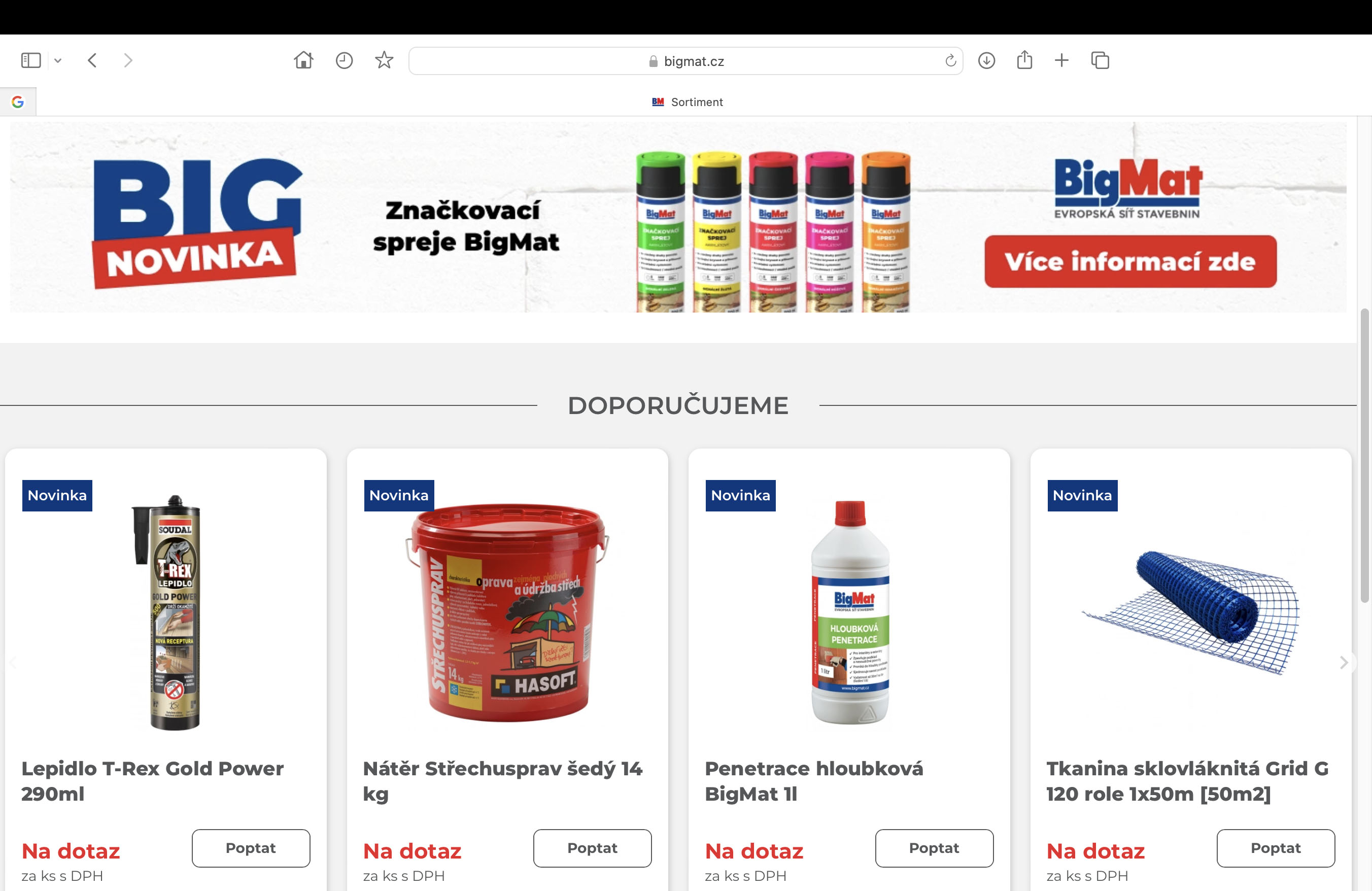 Abychom připomněli, BigMat má ve svém portfoliu 48 členů, což představuje sílu 79 prodejen rozmístěných po celé České republice. Sortiment produktů je vzhledem k počtu dodavatelů obrovský. Pro představu – jedná se o statisíce položek. V současné době najdete na novém webu 9 produktových kategorií, které ale budou průběžně rozšiřovány, takže konečný počet bude 20. No a těchto zmíněných 20 kategorií obsáhne skutečně celou stavbu od základů až po střechu, včetně nářadí, pracovních pomůcek, zahrady a okolí domu, ale do určité míry i interiérového vybavení – jako jsou například koupelny, dveře apod. Prostě kdo staví, Bigparťák ho vybaví.