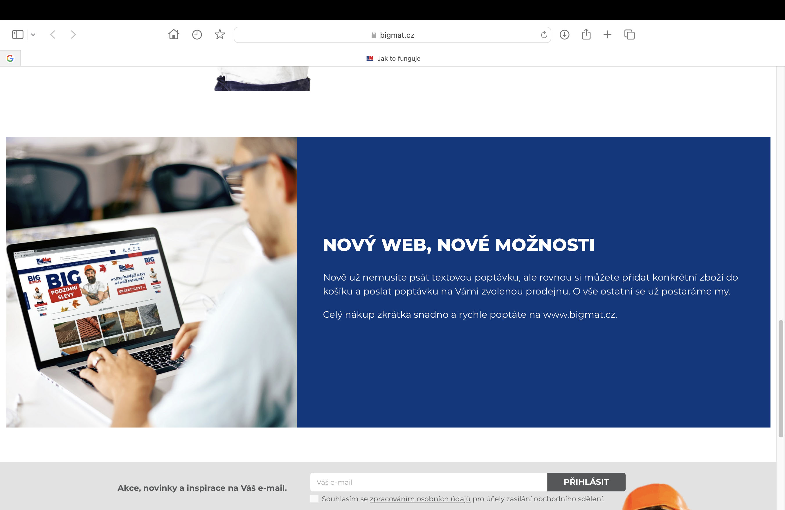 Ke konci roku 2022 byly spuštěny zcela nové moderní webové stránky družstva BigMat. Cílem nového webu bylo v prvé řadě zlepšit vnímání společnosti na internetovém kolbišti. Proto není nový jen atraktivní design, ale celá řada vyspělých funkcí, které zákazníkům a všem uživatelům pomohou v orientaci BigMat služeb a vlastně všeho, co se kolem BigMatu děje. Nový web je prvním krokem do finále, které přinese plnohodnotný a dlouho očekávaný e-shop.