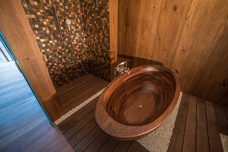 Dřevo: nejnáročnější materiál pro vanu jak s ohledem na výrobu (obvykle na míru), tak na údržbu. Vysoká flexibilita v designu, jedinečná estetika, hřejivý pocit, ale vysoká cena a specifická pravidelná péče.