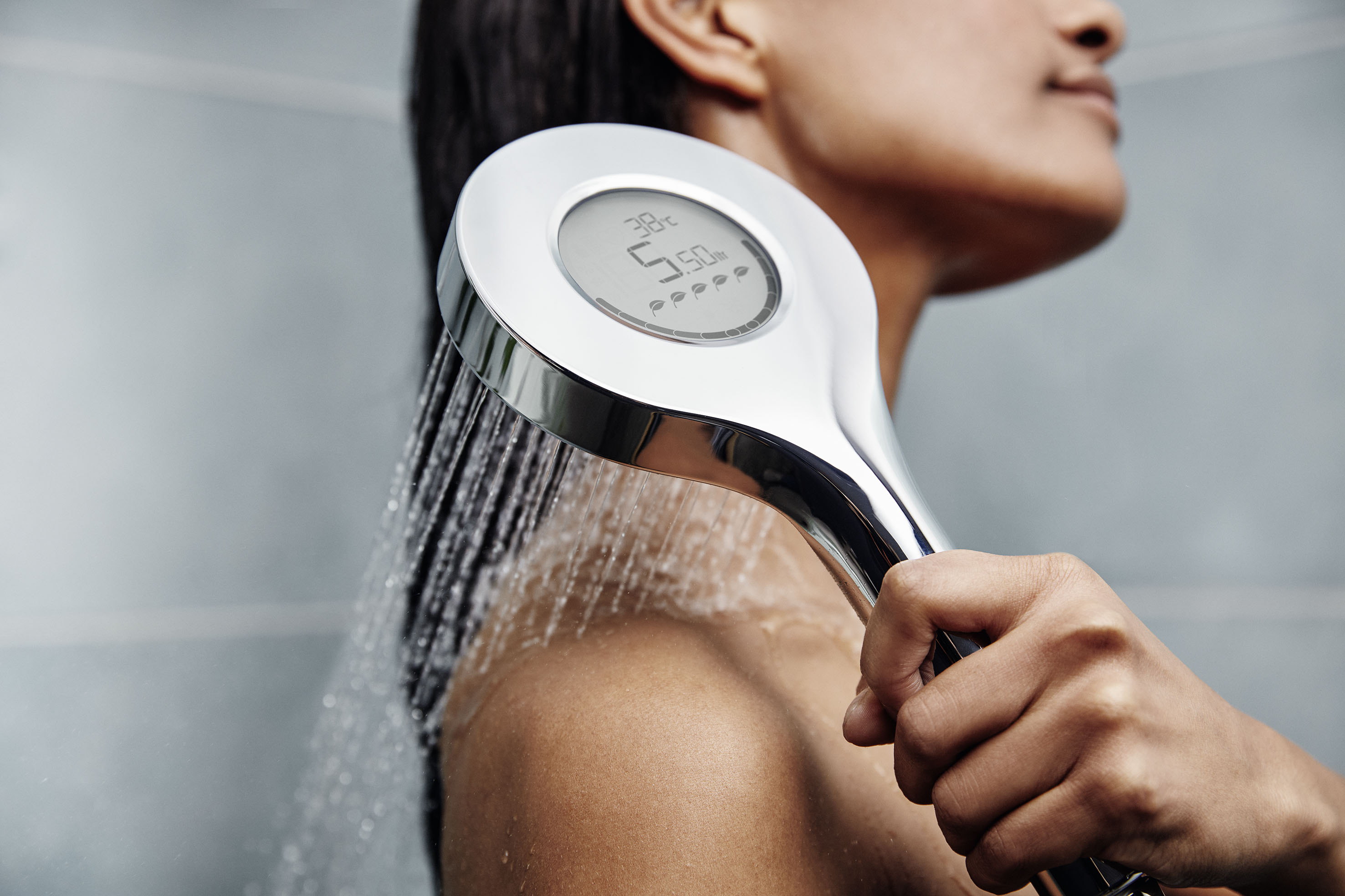 Aby té elektroniky nebylo málo, podívejme se na poslední výkřik technického vývoje – digitální sprchu. Filozofií této novinky (Hansa Activejet Digital) je vyvolat v uživateli podprahovou potřebu šetřit s vodou. Hlavice sprchy má totiž displej, který v reálném čase informuje sprchujícího o tom, kolik litrů vody v dané chvíli protéká hlavicí. Navíc světelná dioda tento fakt umocňuje, protože její barva se mění dle spotřeby vody. Zelená barva znamená, že stav udržitelnosti je dobrý, ale žlutá již varuje a červená barva upozorní na „plýtvání“. K tomu všemu dostanete informaci o aktuální teplotě vody. Napájení je vyřešeno bez bateriově, protože sprchová hlavice má v sobě integrovanou turbínku, která se průtokem vody aktivuje a vyrobí potřebnou energii. Milovníky chytrých mobilů a všelijakých měření a statistik potěší, že si může stáhnout aplikaci, ve které bude na bázi Bluetooth zaznamenáno veškeré dění a průběh spotřeby vody v delším časovém horizontu.