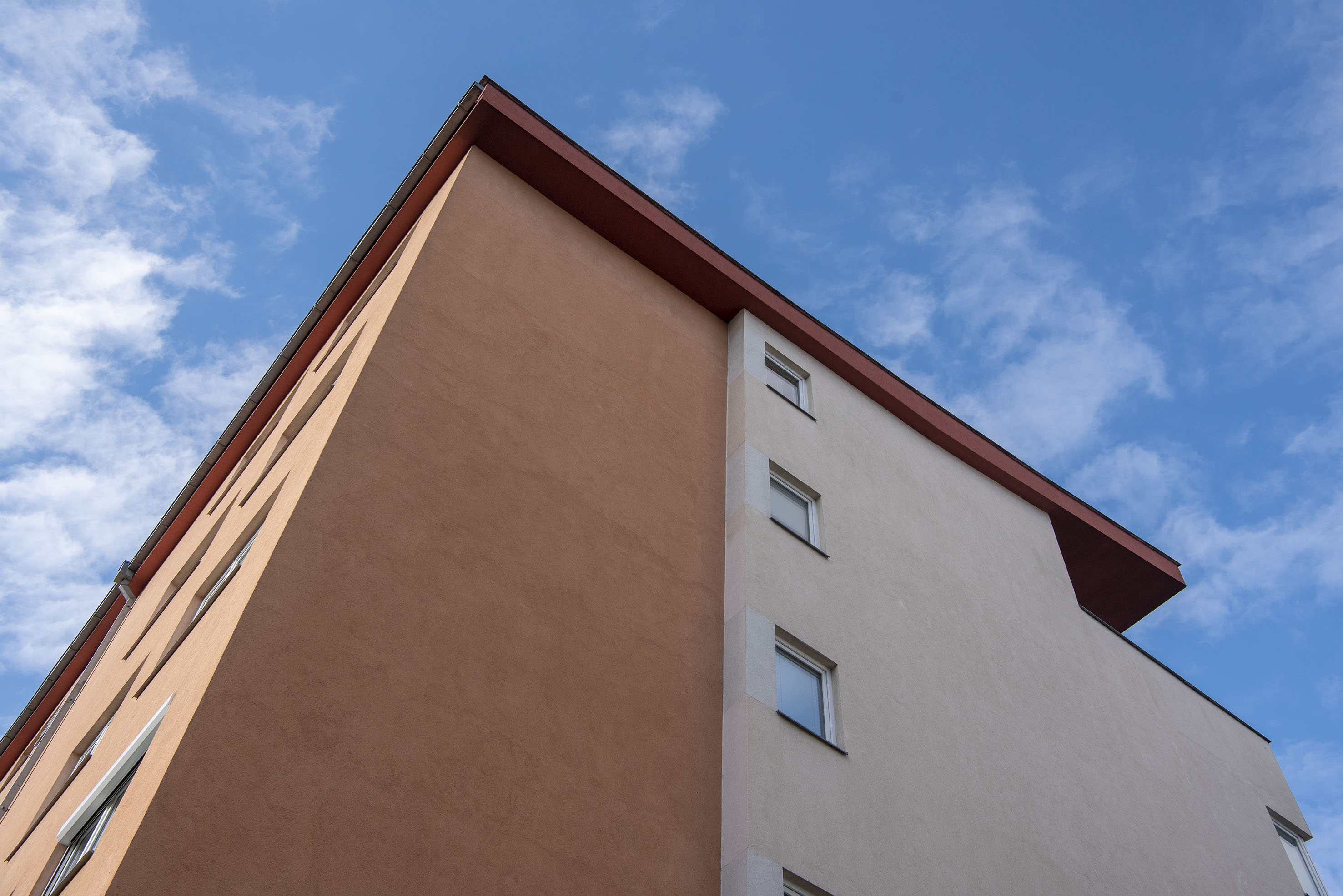 Jak tedy postupovat v případě, že chceme fasádnímu systému navrátit nový vzhled a prodloužit jeho živostnost? Obecně platí, že je vhodné nejprve provést analýzu problému a zjistit, zda je poškození fasády pouze povrchové. Pokud ano, provede se nejprve čištění plochy tlakovou vodou, což lze i několikrát opakovat, podle stupně znečištění. Následně se na povrch fasády aplikuje přípravek Cemix Fungicen, který má za úkol biologicky odstranit řasy, plísně, houby a jiné zárodky mikroorganismů. Fungicen má obrovskou schopnost pronikat do hloubky což přispívá jeho vyšší účinnosti. Po zaschnutí přípravku následuje aplikace fasádní barvy, například Cemix Cempaint Extra. Jedná se o silikonovou fasádní barvu, která vyniká výbornou přilnavostí a soudržností. Její prémiová kvalita spočívá ve vyváženém poměru důležitých složek, to znamená silikonu, polymerní disperze a bioticky účinných ochranných látek v mikrokapslích, které jsou postupně uvolňovány. Barva vyztužená vlákny je pružná a dlouhodobě chrání povrch fasády, a bez problémů zahladí mikrotrhliny. K tomu všemu zde navíc působí fotokatalytický efekt, který působením světla rozkládá chemické látky včetně bakterií, virů apod. Přítomnost silikonu zase podporuje paropropustnost barvy. Mimochodem, barvy, které mají vyšší podíl silikonu, se obvykle tónují do přírodních odstínů. Což může být první známka kvality výrobku. Abychom ale nezapomněli na jednu důležitou věc, podle stavu podkladu je třeba zvážit použití penetrace. Penetrace stabilizuje a zpevňuje povrch podkladu, sjednocuje jeho savost, která by mohla být v některých případech narušena. Penetraci je nutné nechat zaschnout vždy do druhého dne. Běžná renovace by se časově měla z pohledu realizátora vejít do jednoho týdne. Obecně se doporučuje se provádět čištění fasádního systému v průběhu 5 až 10 let. Životnost správně provedené renovace se pohybuje kolem 15 let.