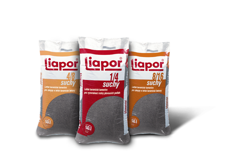 Protože staré domy v sobě ukrývají mnoho překvapení, finální skladbu podlahy by měl nejlépe posoudit projektant. V zásadě je však nutné po rozebrání staré podlahy a vyčištění podkladu povrch vyrovnat. Tím se vytvoří základ pro pokládku následné skladby podlahy. Jako řešení se nabízí podsyp z Liaporu, což je suché keramické kamenivo, které je v porovnání s betonem výrazně lehčí (pouze 500 kg/m3). To znamená, že stropní konstrukci ve výsledku tolik nezatíží. Jedná se o sypký materiál, jenž díky velikosti jednotlivých zrn 1 až 4 mm zaplní nerovnosti ve stávajícím podkladu. Keramické kamenivo Liapor je známo pod názvem „keramzit“. V podstatě se jedná o expandovaný jíl, tedy čistě přírodní a ryze ekologický materiál. Dodává se v praktických pytlích, které usnadňují manipulaci.