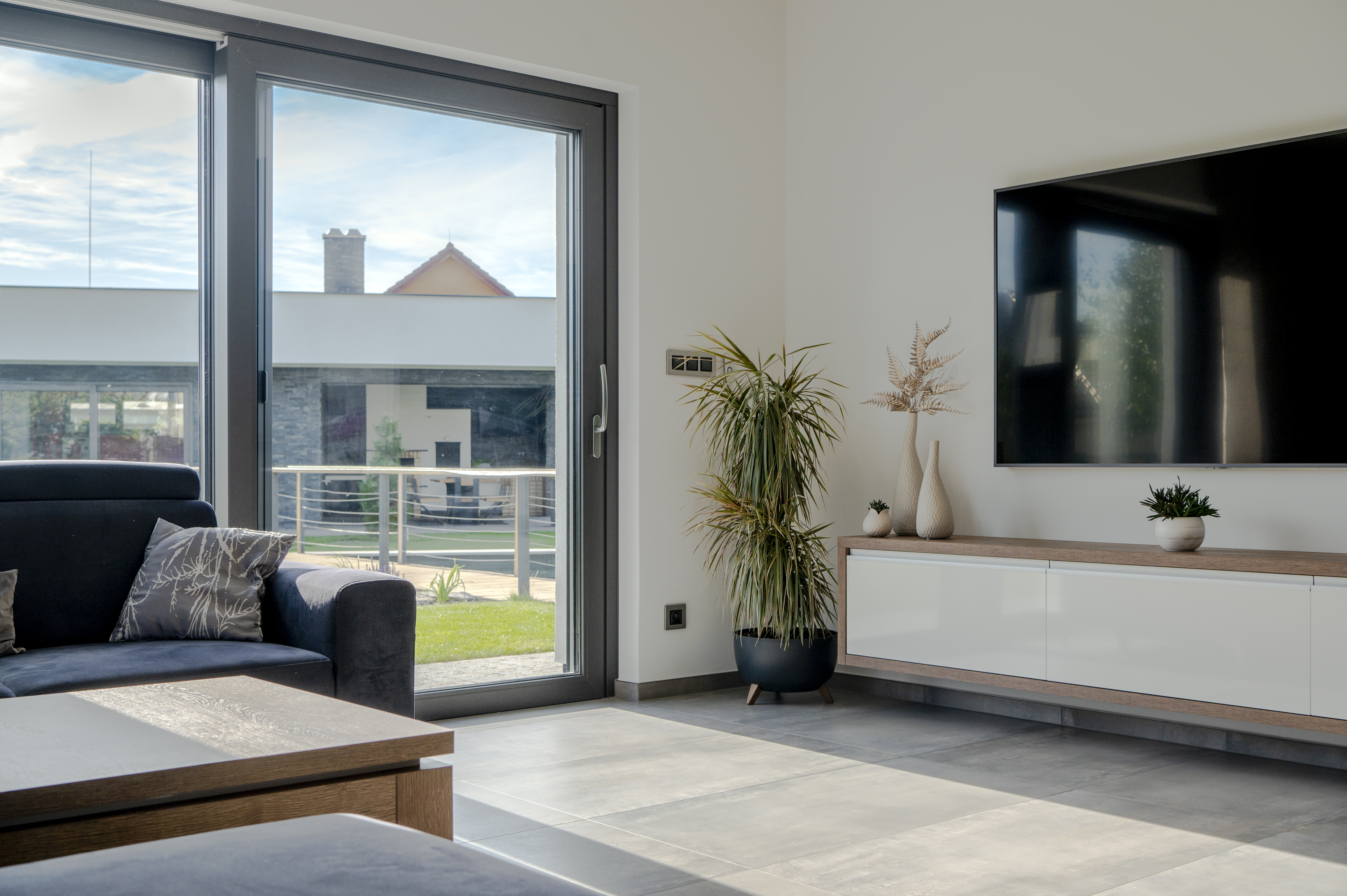Pravděpodobně prvním kritériem, který ovlivní rozhodování, jsou rozměry a posléze materiál včetně typu zasklení a případně požadavku na tepelnou izolaci, zejména pokud stavíte nízkoenergetický nebo dokonce pasivní dům. To zásadně promlouvá do ceny. Hliníkové systémy vynikají zejména většími konstrukčními možnostmi, štíhlou konstrukcí a elegancí. Jsou samozřejmě nejdražší. Pak jsou tu systémy z PVC, které jsou do určité míry omezeny svými maximálními rozměry. Je třeba počítat s tím, že okenní systémy včetně HS portálů jsou namáhány také tepelně, zejména pokud zvolíte populární antracitový nebo jakýkoliv tmavý odstín. Nároky na pevnost a tvarovou stabilitu za každých podmínek jsou tedy u posuvných systémů mnohem náročnější. Kartami mohou zamíchat i některé další požadavky v podobě hlukového útlumu, protože se čím dál více staví i na rušných místech. Hlukový útlum je nutné řešit komplexně, tedy nejen typem profilu, ale i zasklením. A to vše pak ovlivní hmotnost systému a tím i jeho nároky na technickou vyspělost.