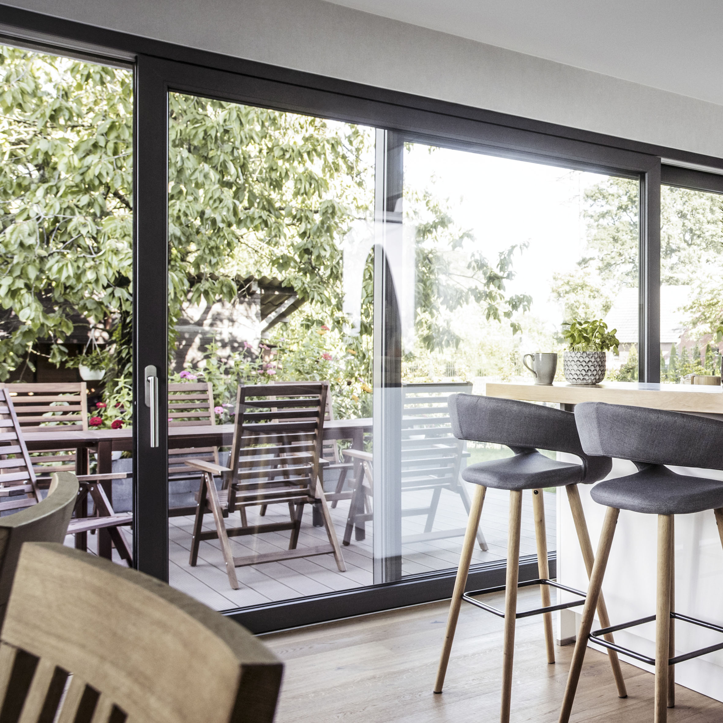Téměř u každé novostavby rodinného domu nechybí v projektu velkoformátové posuvné dveře, které propojují obývací prostor s terasou respektive zahradou. Jedná se o velmi důležitý prvek okenního systému, který vylepšuje komfort bydlení. Kromě zprostředkování přímého kontaktu s okolní přírodou dodává interiéru mnohem více světla a de facto rozšiřuje obývací prostor o terasu. Dříve se používaly především tzv. „francouzské“ dveře nebo také „francouzská okna“. V dnešní době se většina architektů přiklání k jiným systémům – PSK nebo k tzv. HS portálům.
