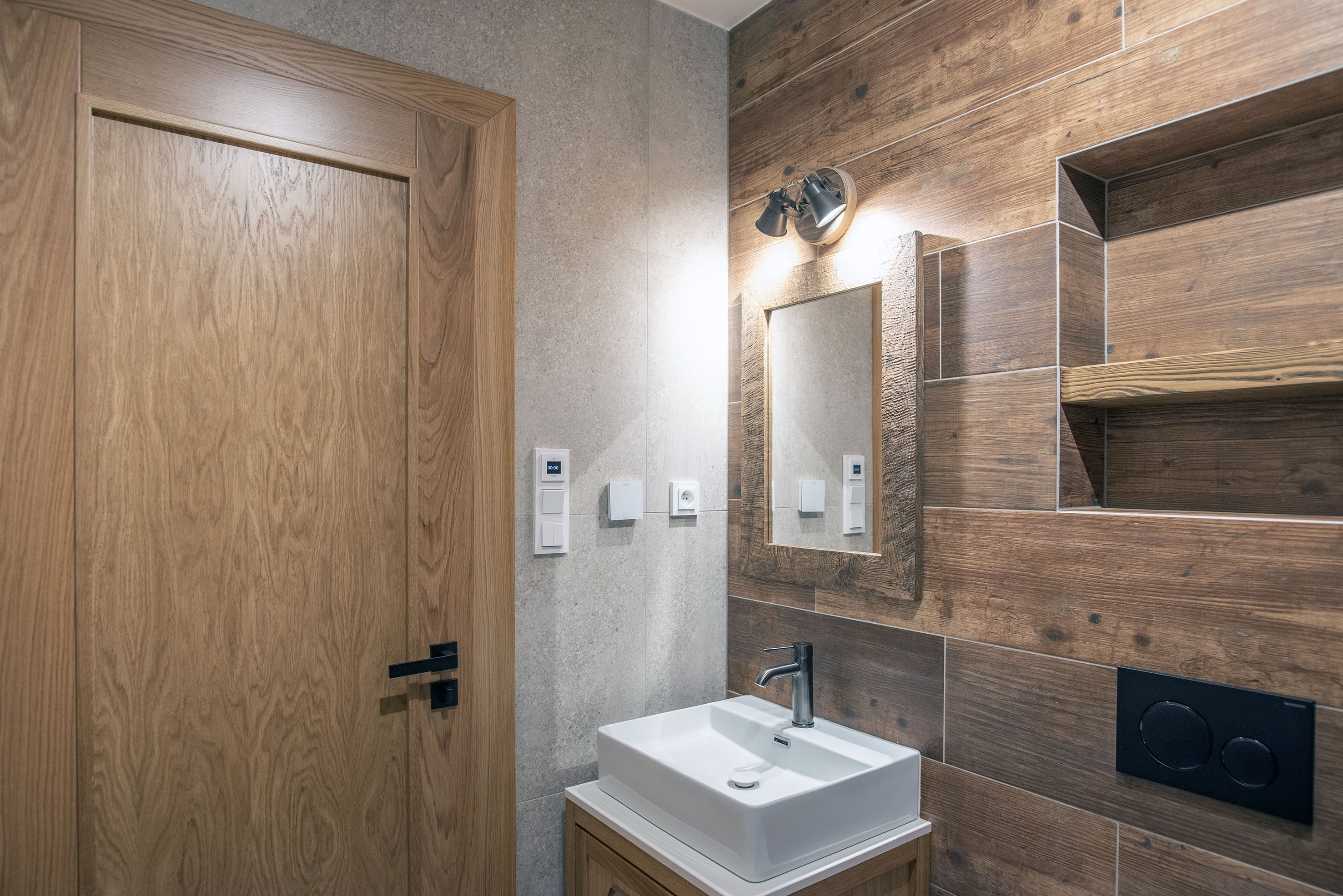 Tmavé barvy a světlé dřevo – hluboké odstíny jako antracitová, tmavě modrá a lesní zelená vyzařují sofistikovanost a vytvářejí bohatý a opulentní dojem, který dokáže proměnit koupelnu v luxusní útočiště. Tmavé barvy také dodávají prostoru hloubku, kterou podpoří vysoce kontrastní designové prvky jako přírodní dřevo nebo kartáčovaná měď a mosaz.
