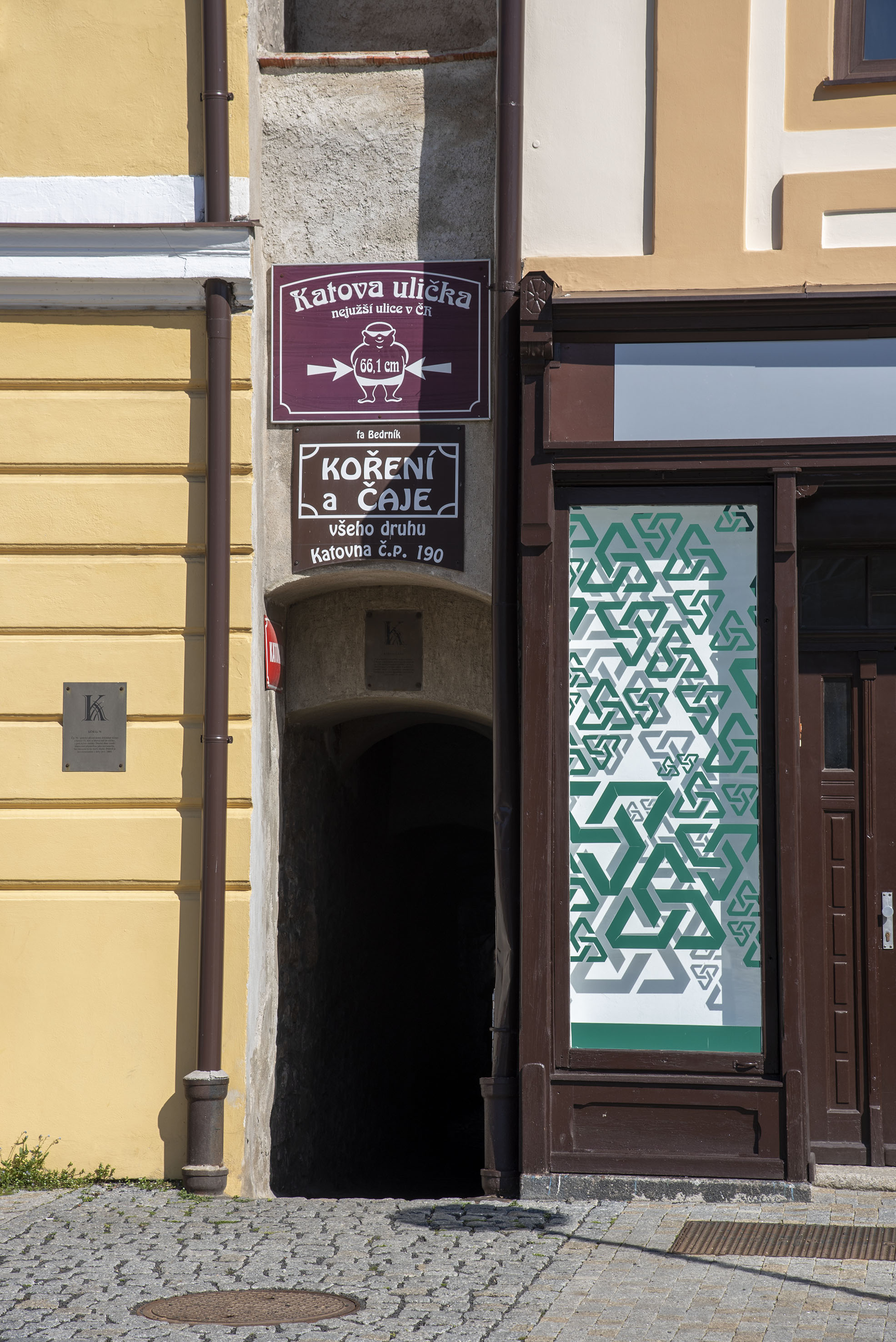 Vraťme se však zpátky na náměstí. Než zamíříme do jednoho českého unikátu – Katovi uličky, není možné si nechat ujít prohlídku barokního sloupu uprostřed kadaňského náměstí. Morový sloup se tyčí do výšky 25 metrů a byl zhotoven z pískovce. Ale pojďme dále ke Katově uličce. Jedná se o nejužší pojmenovanou uličku v České republice. V nejužším místě byste naměřili pouhých 66 cm. Uličkou se vydáte lehce z kopce směrem dolů, a zhruba po padesáti metrech se ocitáte na katově plácku, který je součástí hradebních parkánů kadaňského opevnění. Název jasně napovídá, komu ulička sloužila. Kadaňský kat tudy procházel ke svému domu č.p.190, kde bydlel. Dnes tu kata nepotkáte, ale zato zde můžete zakoupit čaj nebo koření. Kat ale samozřejmě nebyl jediným uživatelem. Ulička sloužila také k odvádění přebytečné vody z náměstí do Bystřického potoka, byla rychlou spojnicí mezi náměstím a hradebními parkány v čase obléhání. V době, kdy byly městské brány v noci uzavřeny, bylo možné v naléhavých případech tudy projít do města. Později uličkou také pravidelně chodíval městský lazebník, který plni své pracovní povinnosti v městských lázních vybudovaných v 15. století na břehu Bystřického potoka. Dnes je ulička především turistickou atrakcí. Směrem doleva od Katovi uličky se nachází Minoritská bašta s velkou dělovou věží a muzeem. Cesta doprava vás naopak zavede kolem žatecké brány (tou jsme do historického města vstoupili) až ke Kadaňskému hradu.