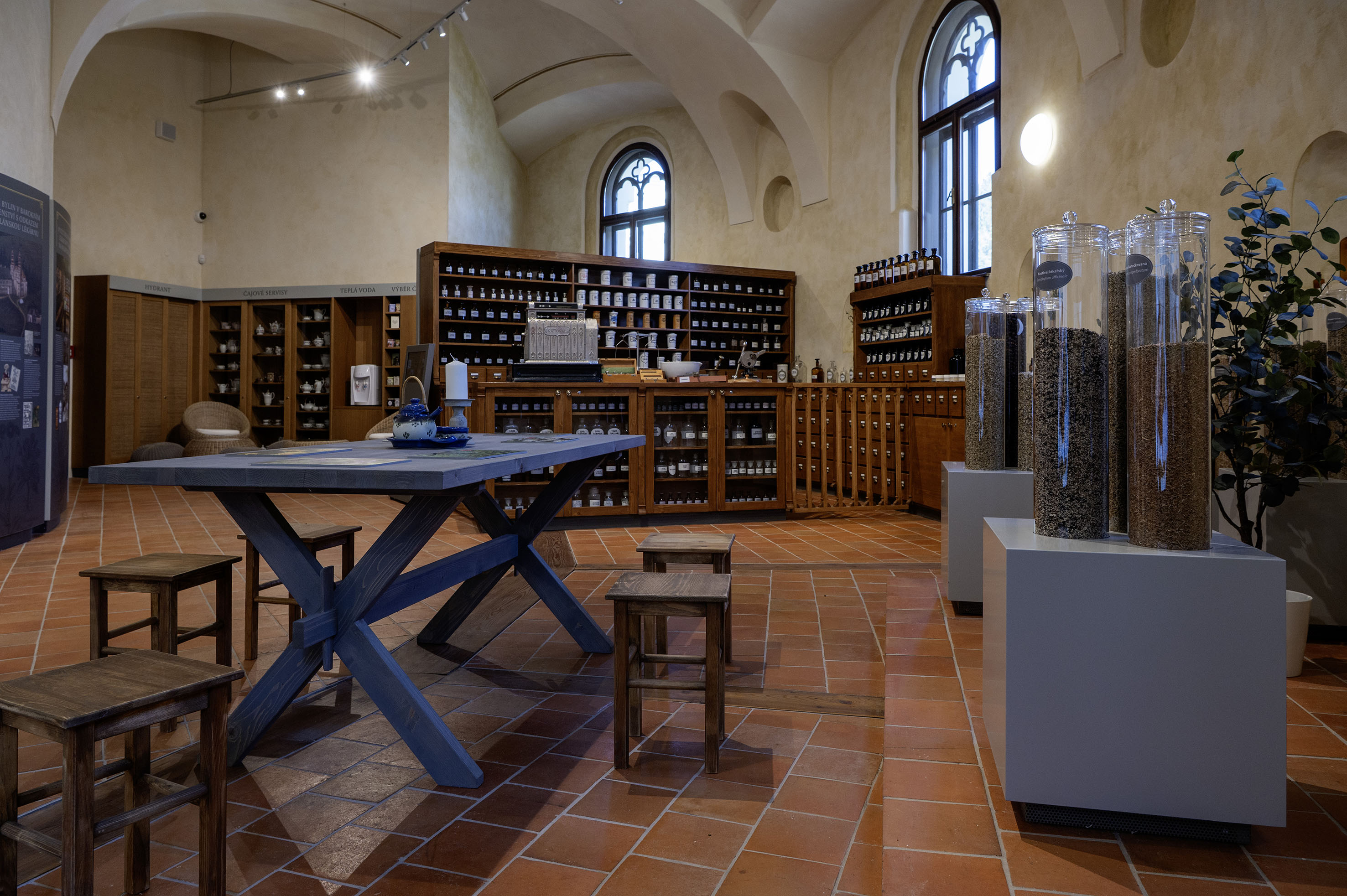 Jízdárna je v současné době vyhledávaným turistickým cílem a při její návštěvě si můžete dopřát některou z komentovaných prohlídek. Také tudy vede řada cyklostezek i turistických tras. Využití jízdárny je ovšem mnohem širší, neboť se zde pořádají různé kulturní akce, koncerty, svatby apod. Součástí návštěvního okruhu je také nová expozice bylinkářství a Českého lesa, dále historického oblečení, byt kováře nebo návštěva koňských stájí. Výstava věnovaná bylinkářství tu nevznikla jen tak a navazuje na historii místního bylinkářství i když v historických plánech kláštera není žádná místnost, která by mohla být označena jako lékárna. Pravdou je, že v roce 1786 se v Tachově usadil a založil první lékárnu Anton Storch. Větší rozvoj farmacie a chemie, tedy důležitých oborů pro vznik lékáren, nastal již ve středověku. Lékárny vznikaly postupem času jako klášterní a veřejné. A protože kláštery byly významným místem léčení nemocných, klášterní zahrady se staly důležitými pro pěstování nejrůznějších bylin. Nejčastěji se v nich pěstovaly rostliny jako například fenykl, kmín, máta, kosatec, vratič, rozmarýn, šalvěj, saturejka, řeřicha, libeček a mnoho dalších rostlin, které našly uplatnění nejen v kuchyni, ale právě i v bylinkářství.