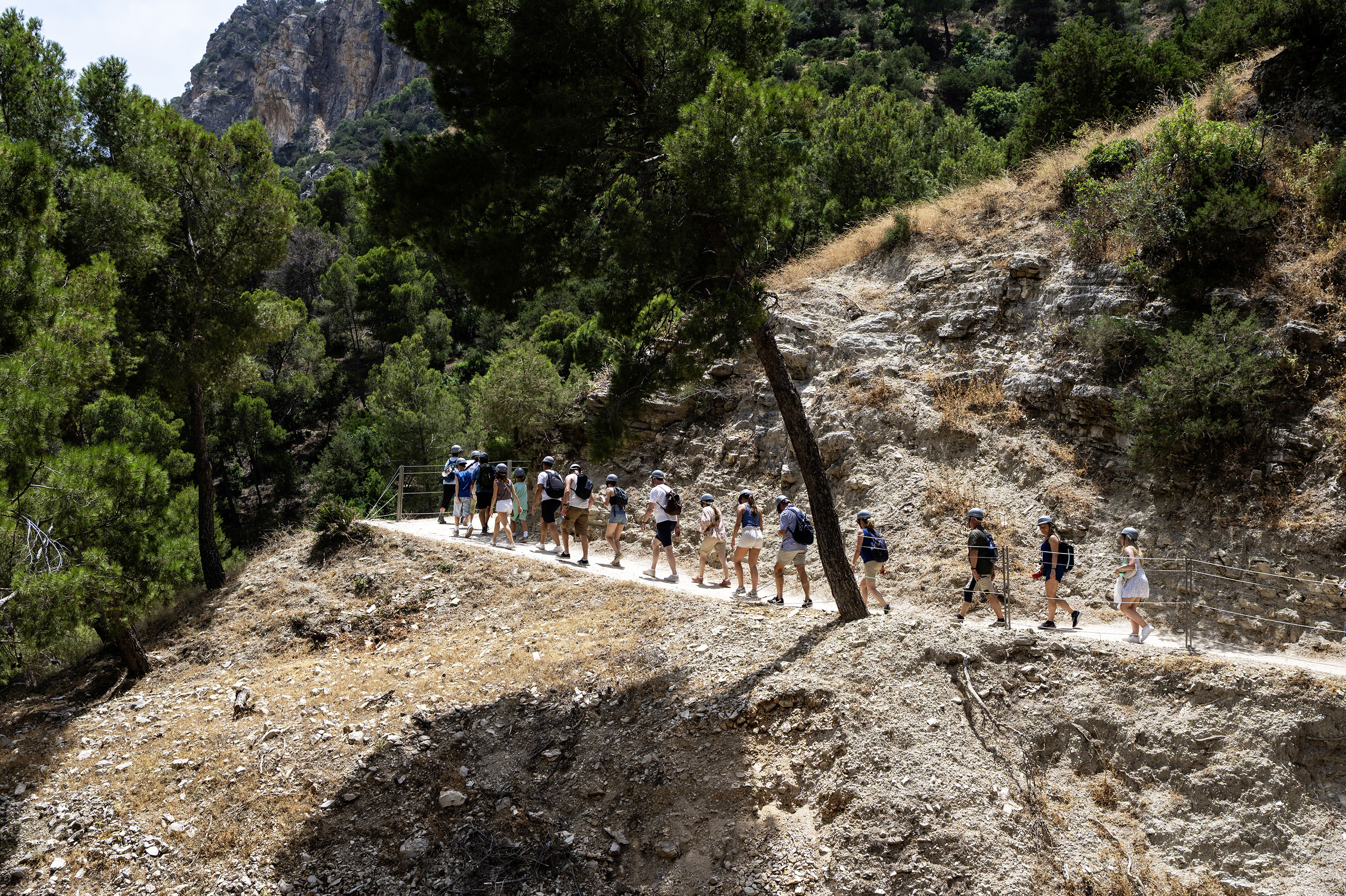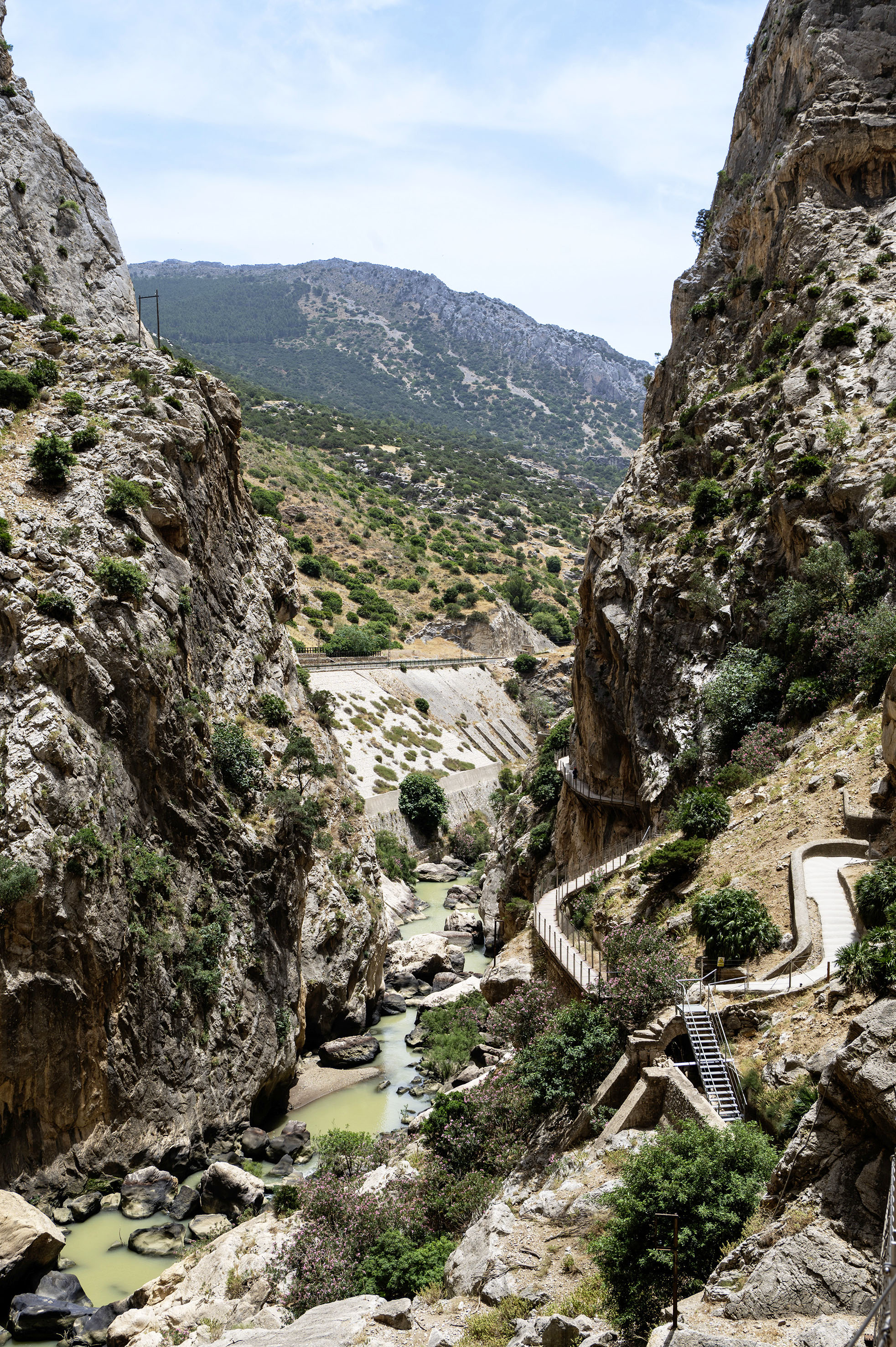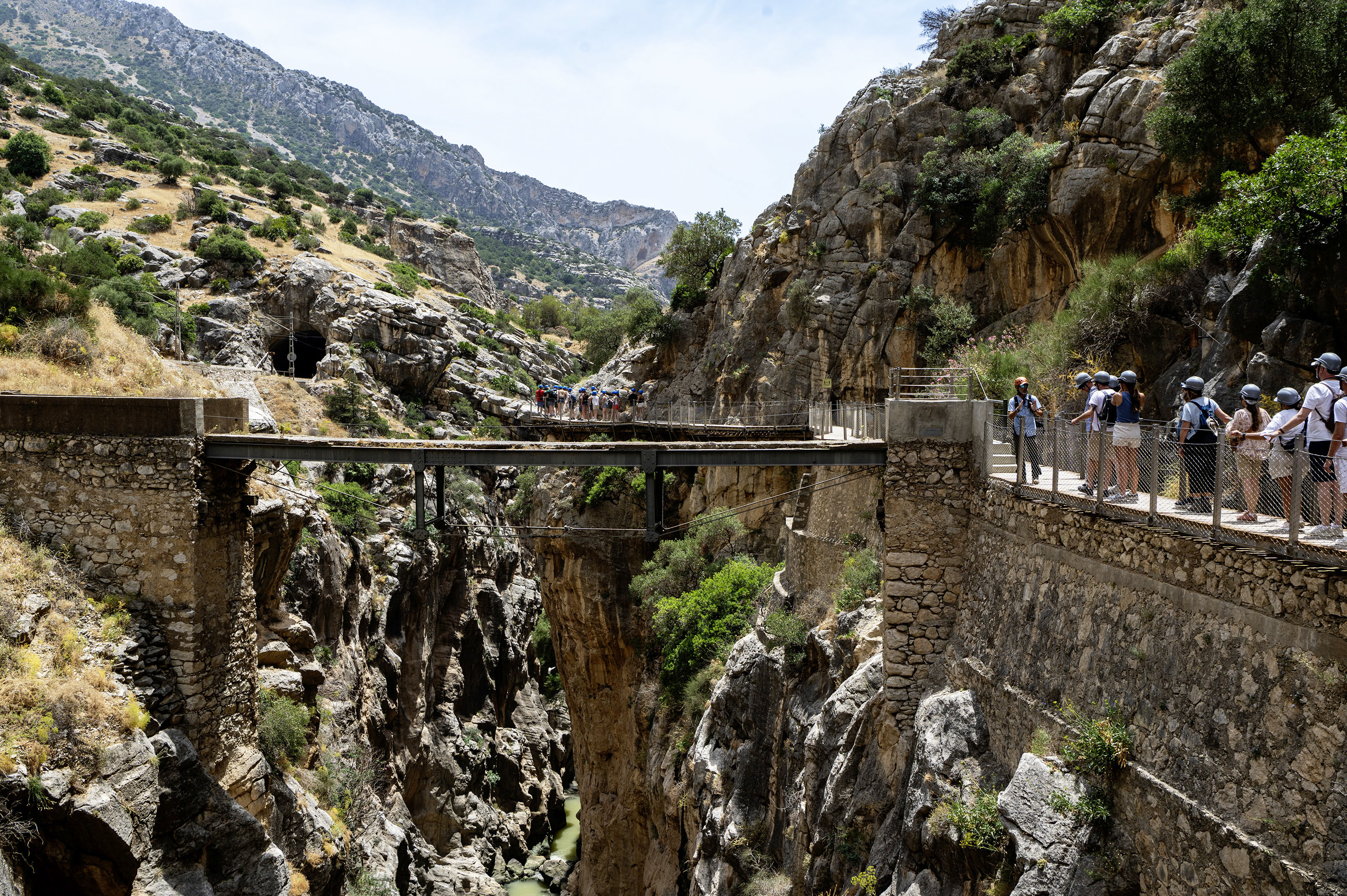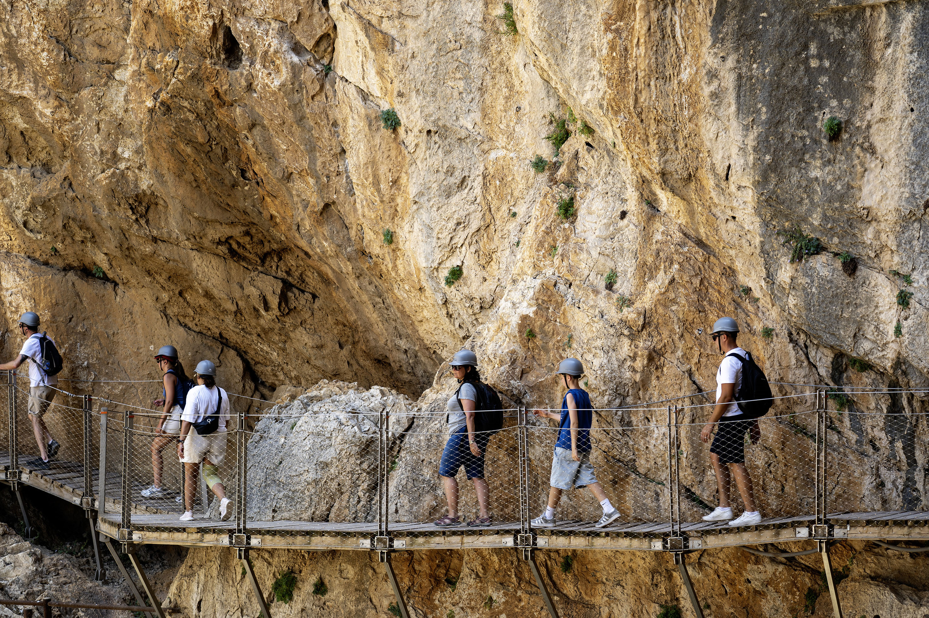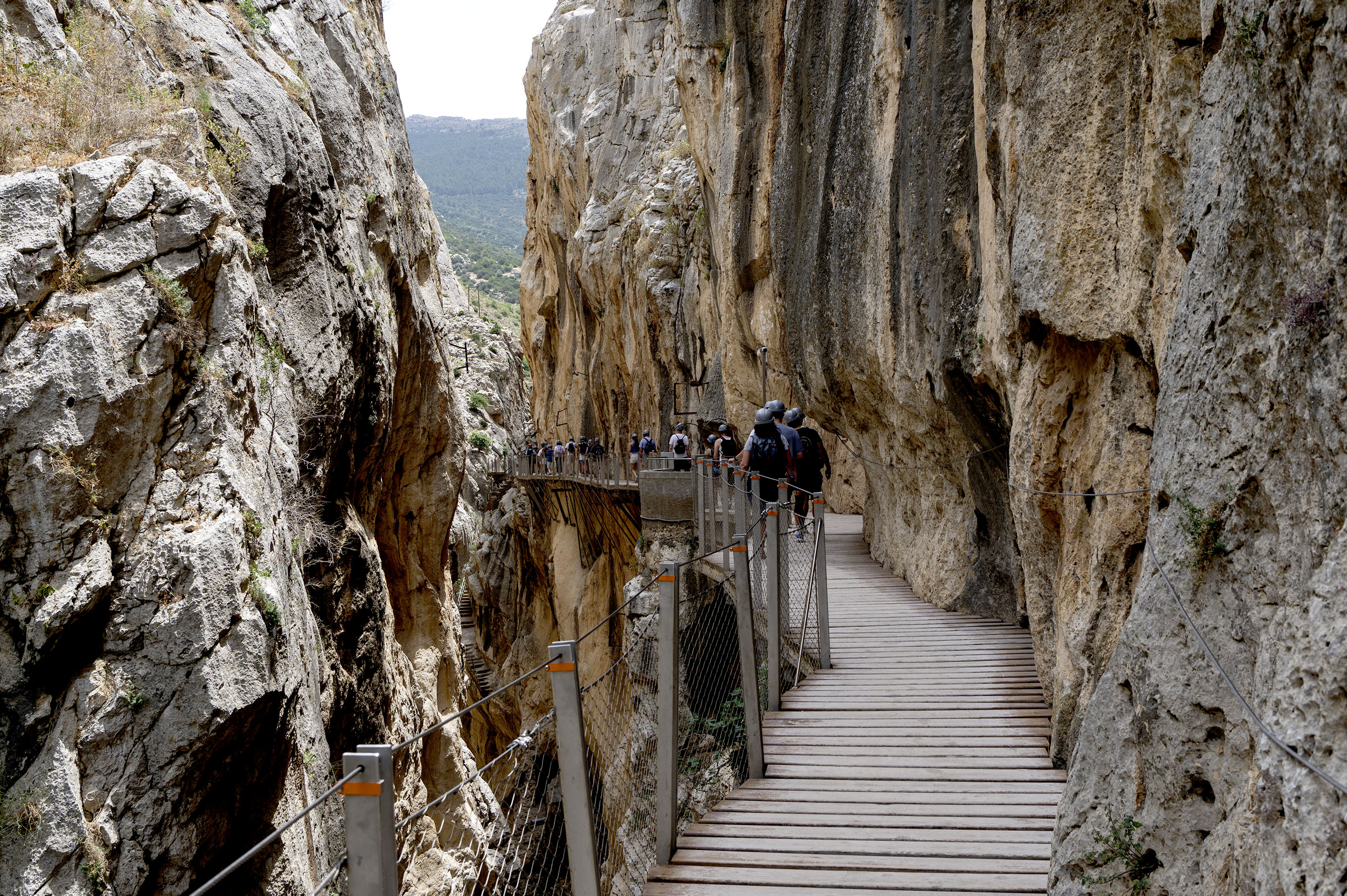 Stezka se vine kolem strmých skalních stěn, úzkými roklemi, přes mosty i soutěsky. Včetně přibližovací cesty ke vchodu měří na délku necelých 9 kilometrů a tak zabere zhruba 3 hodiny krásného zážitku. Náročnost není těžká, protože většinou jdete mírně z kopce či po rovině. Chodníky i schodiště jsou opatřeny samozřejmě zábradlím, takže jste v bezpečí. Nicméně opatrnost je na místě, stejně jako poslouchat pokud možno instrukce průvodce. O čemž svědčí zážitek hned v první části stezky v podobě vyvrknutého kotníku mladíka z Británie, který nedával pozor a uklouzl na mokrém kameni v tunelu. Každopádně stezka je pouze jednosměrná (jinak by to ani nešlo) ve směru od přehrady Guadalhorce a vodní elektrárny Gaitanejo do vesnice El Chorro. K elektrárně se dostanete pouze shuttle busem za 2,5 eura (jízdenka je i zpáteční) z centrálního parkoviště (návštěvnického centra), přičemž jezdí každých 30 minut. Pro zajímavost – z Malagy na zmíněné parkoviště je to zhruba hodinu cesty autem (cca 58 km). Po stezce se chodí většinou po skupinách s průvodcem, přičemž vyfasujete u vstupu helmu a sluchátka. Vstupenky je třeba zakoupit předem a rezervovat si konkrétní čas (cena byla v letošním roce 18 euro). A pozor, děti mladší 8 let nemají na stezku přístup. Dále je třeba počítat s tím, že od centrálního parkoviště ke vstupu na vlastní stezku to trvá minimálně hodinu: cesta autobusem + pěšky zhruba 1,5 kilometru. Teprve potom můžete vyrazit.